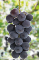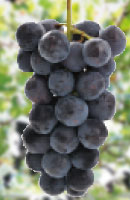 当園で一番早く熟します。果実の外見は巨峰によく似ています。球体に近いよく熟した果実は、まるで紫色の宝石のよう。口に含むとむせ返るような甘みと果汁で、満足感が得られること間違いなし! 生産者が非常に少なく、なかなか手に入りにくいブドウです。